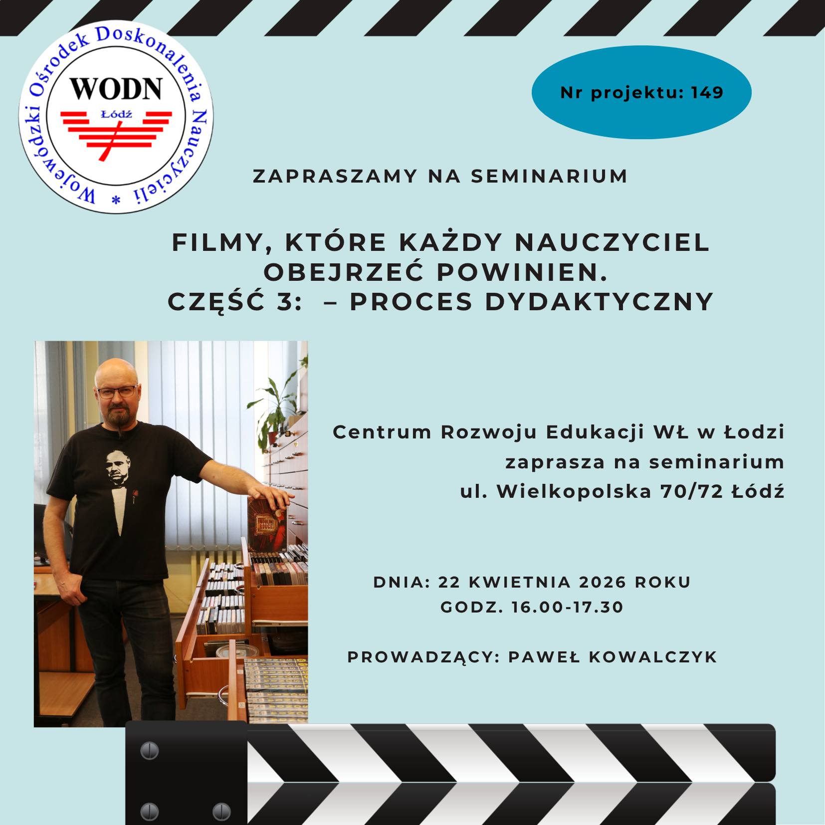 Serdecznie zapraszamy nauczycieli, bibliotekarzy, wychowawców oraz wszystkich zainteresowanych edukacją filmową!