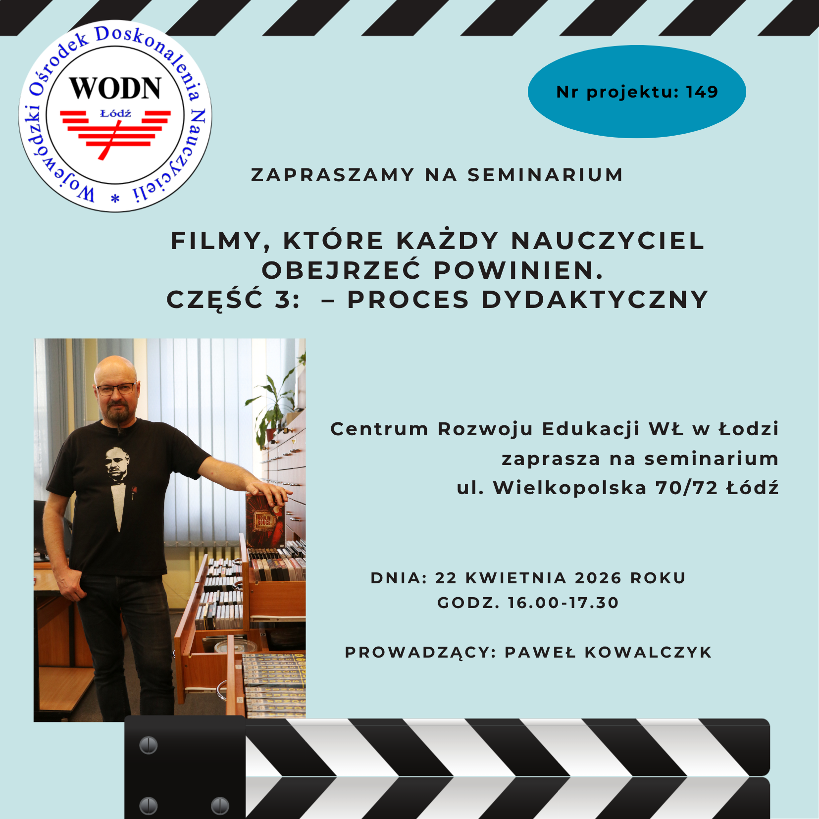 Serdecznie zapraszamy na seminarium: Filmy, które każdy nauczyciel obejrzeć powinien. Część 3: – Proces dydaktyczny