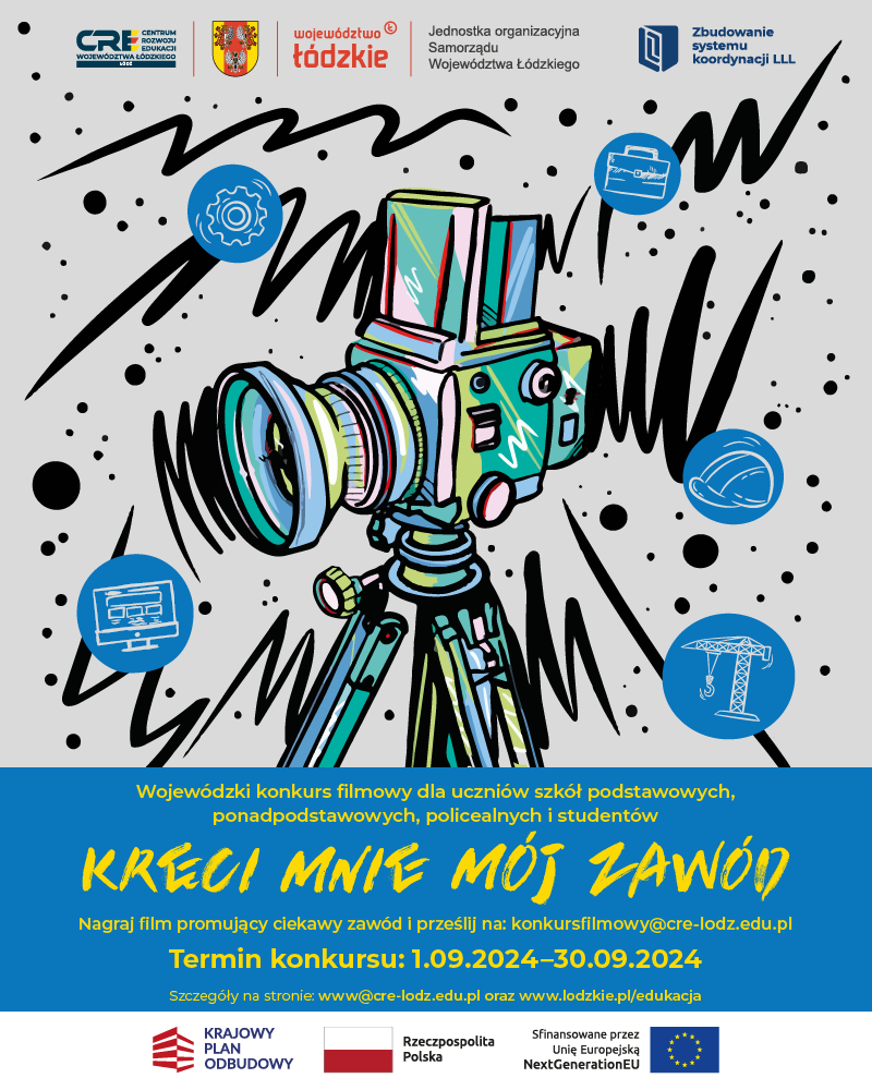 - Organizatorem Konkursu pn. „Kręci Mnie Mój Zawód” jest Centrum Rozwoju Edukacji Województwa Łódzkiego w Łodzi, ul. Wielkopolska 70/72, przy współpracy Departamentu Edukacji Urzędu Marszałkowskiego Województwa Łódzkiego, al. Piłsudskiego 8, 90-051 Łódź oraz Politechniki Łódzkiej.