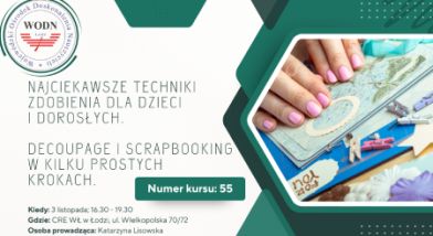 Zapraszamy na kolejne twórcze spotkanie - „Najciekawsze techniki zdobienia dla dzieci i dorosłych. Decoupage i scrapbooking w kilku prostych krokach”